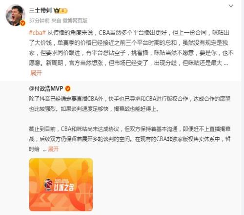 截止目前,CBA和咪咕尚未达成协议,但双方保持着基本沟通,即便赶不上直播揭幕战,后续双方仍保留着展开多轮谈判的空间。在现有的CBA非独家版权售卖体系中,暂时给咪咕预留的依旧是互联网主要播放平台的规划。 |